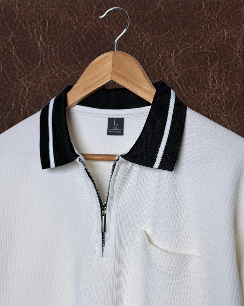 Premium cotton dobby polo, crafted using imported cotton dobby fabric (200 GSM) for superior comfort, durability, and breathability. Designed for modern men who prefer clean styling with elevated details, this zip polo blends casual comfort with smart sophistication.