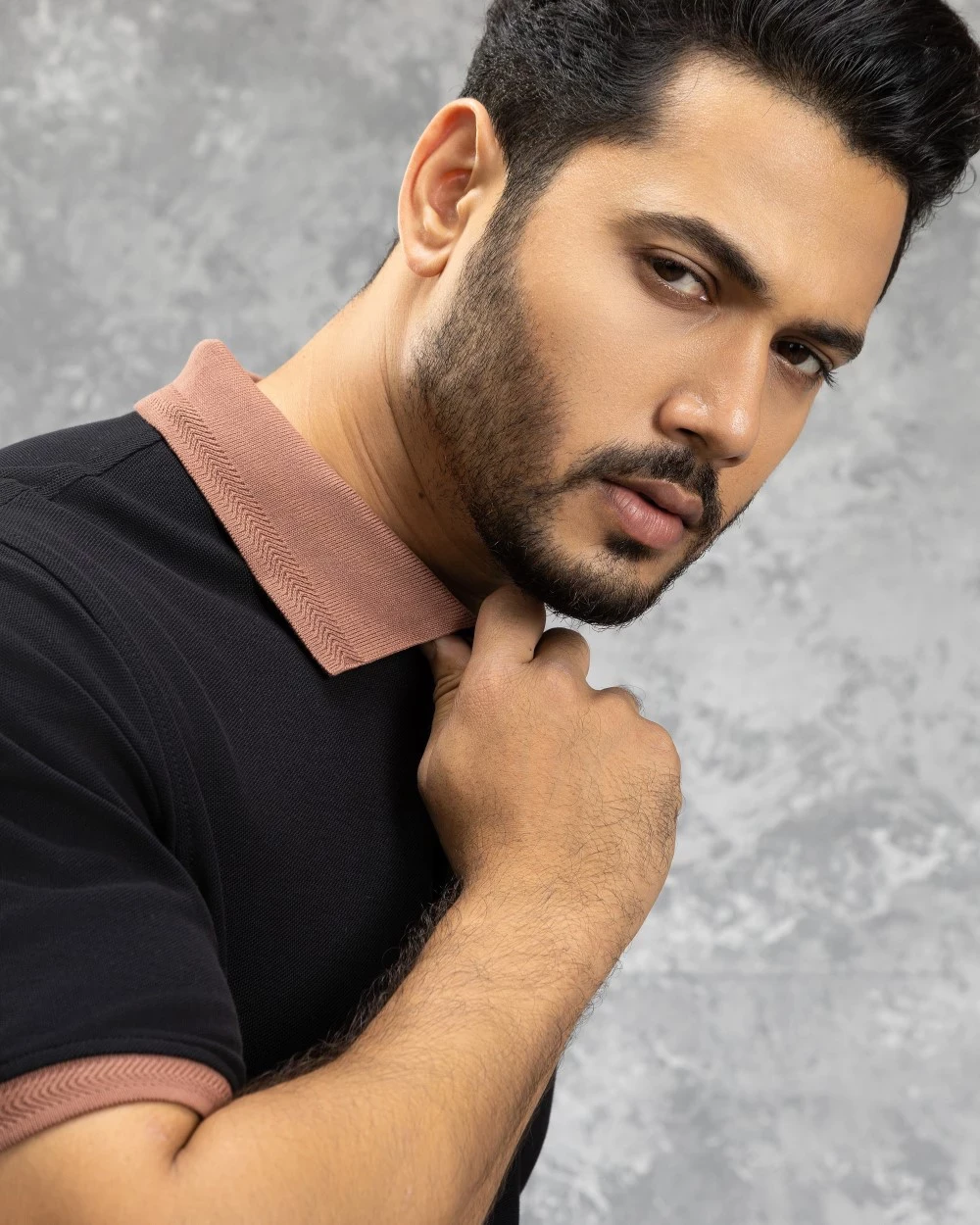 Collar/Neck: Jacquard Design Collar and Back neck tape in self fabrics.