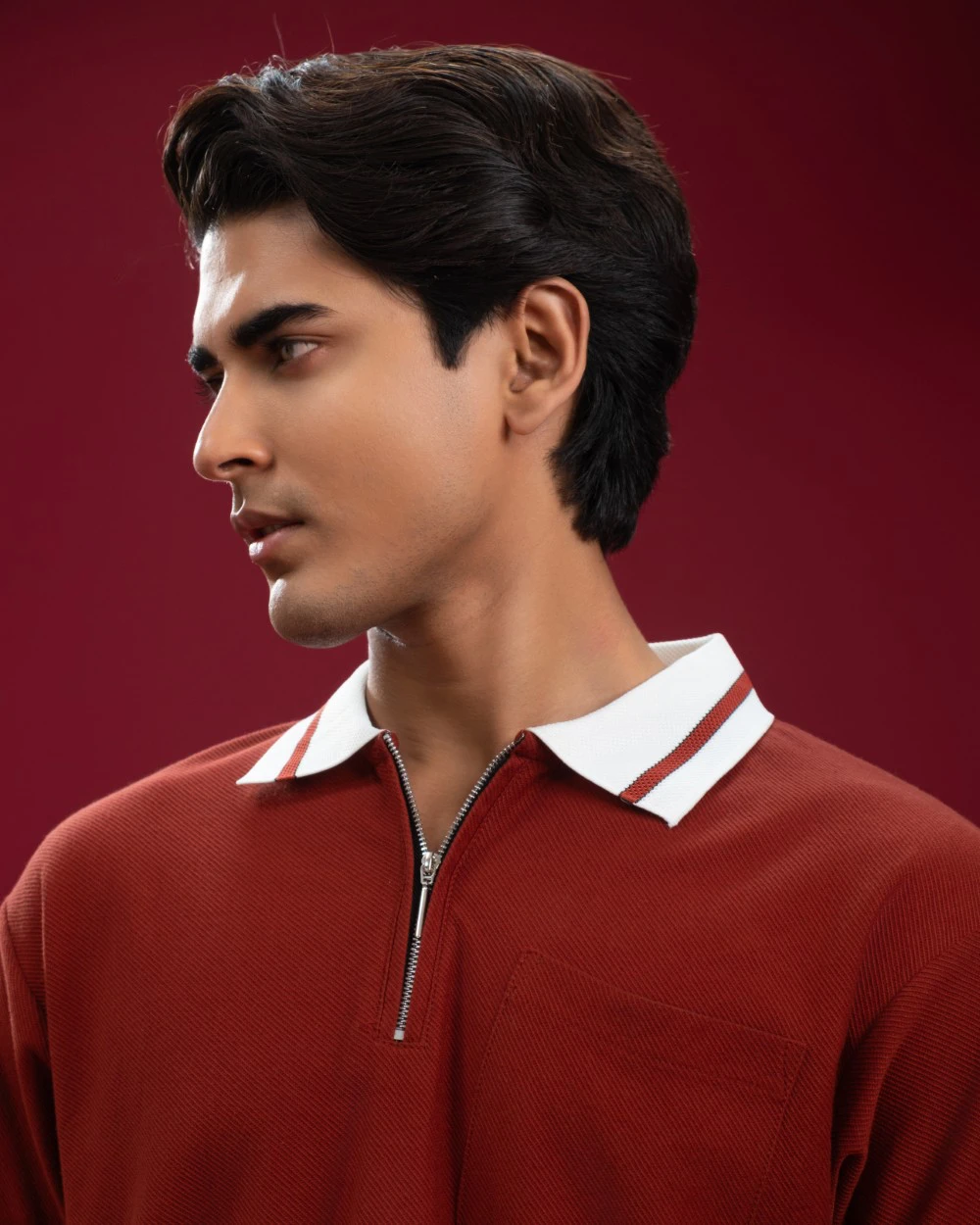 Oversized Amber Red Zip Polo