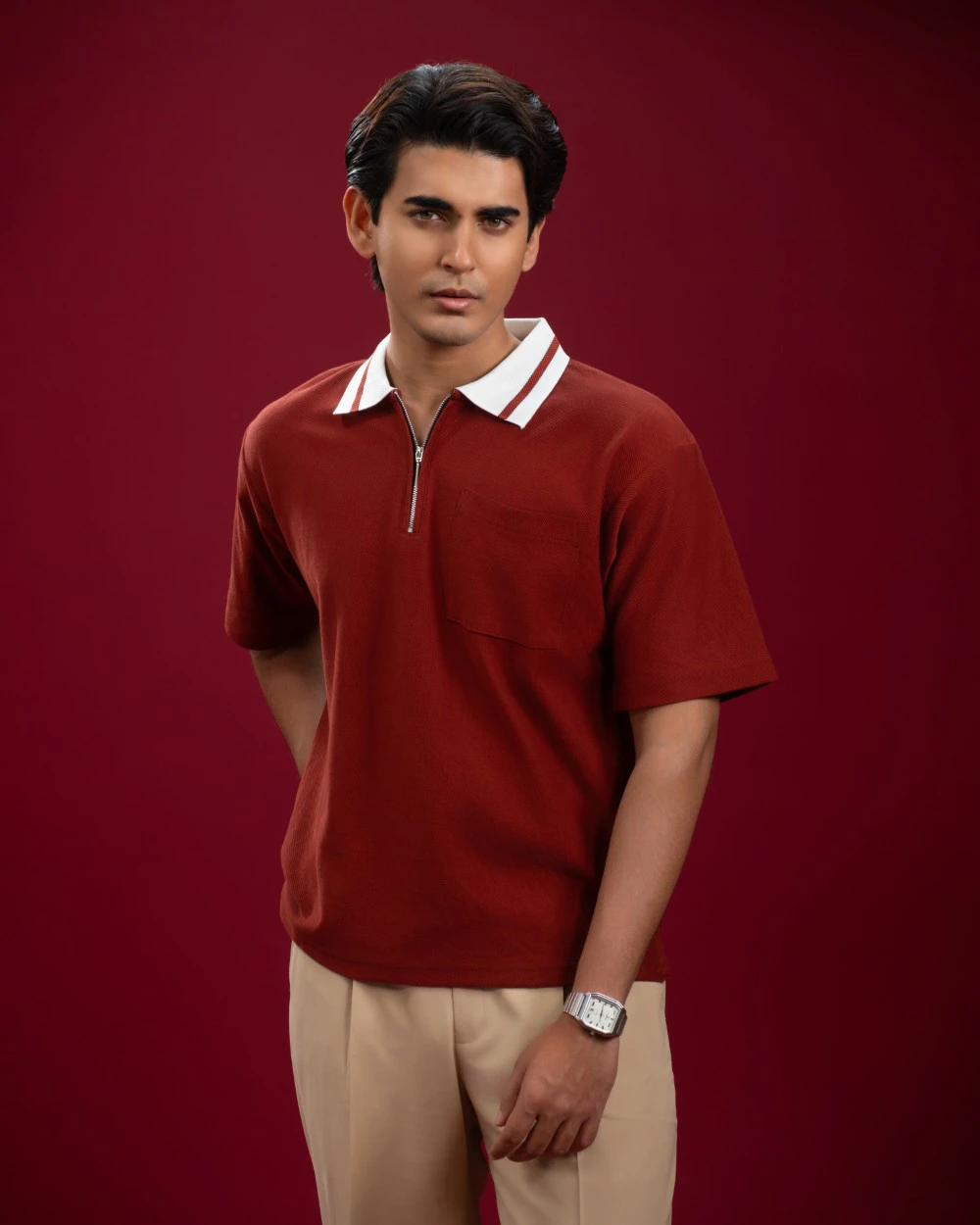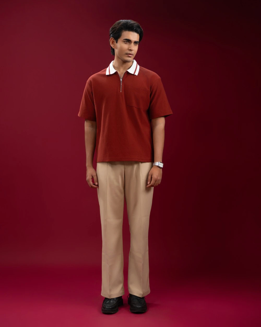 Premium cotton dobby polo, crafted using imported cotton dobby fabric (200 GSM) for superior comfort, durability, and breathability. Designed for modern men who prefer clean styling with elevated details, this zip polo blends casual comfort with smart sophistication.