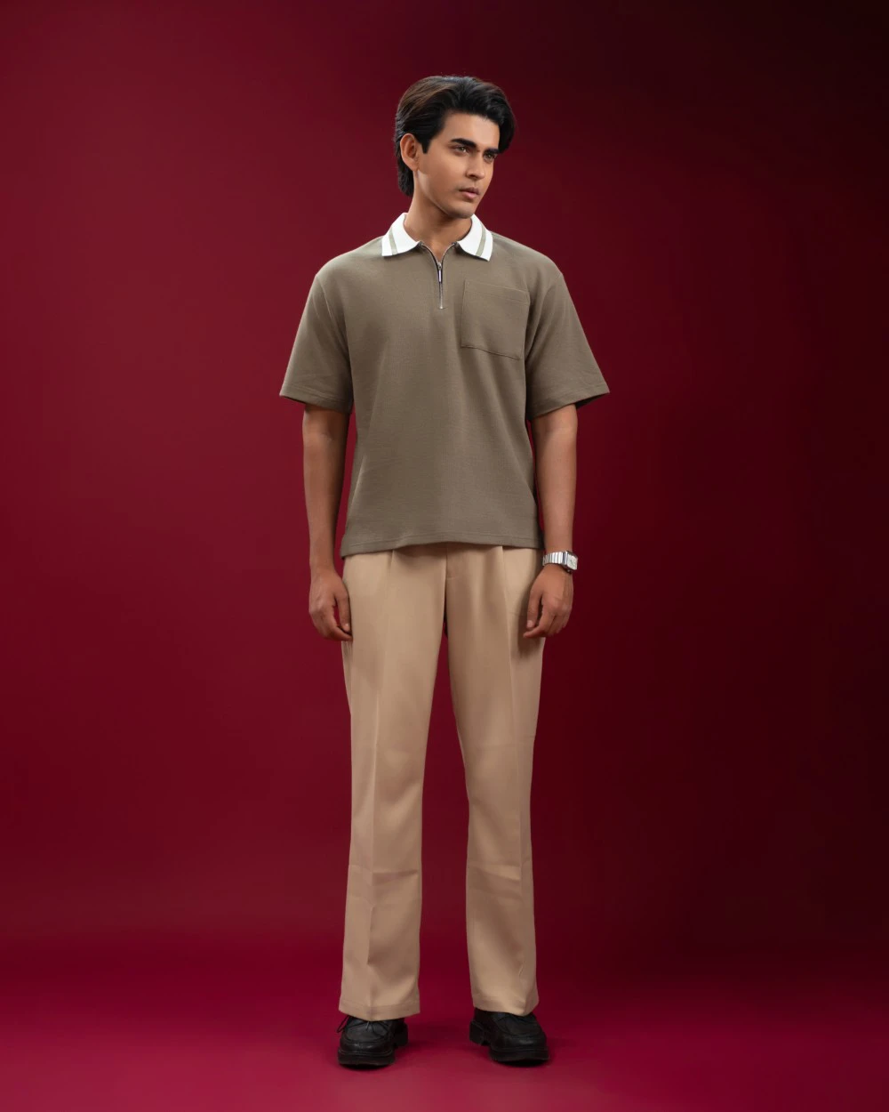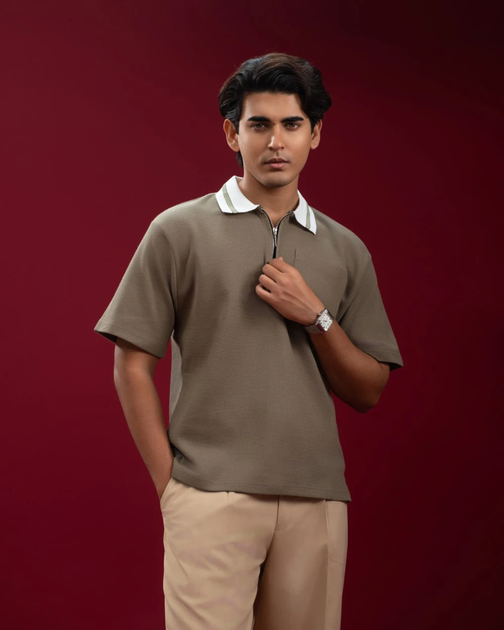 Premium cotton dobby polo, crafted using imported cotton dobby fabric (200 GSM) for superior comfort, durability, and breathability. Designed for modern men who prefer clean styling with elevated details, this zip polo blends casual comfort with smart sophistication.