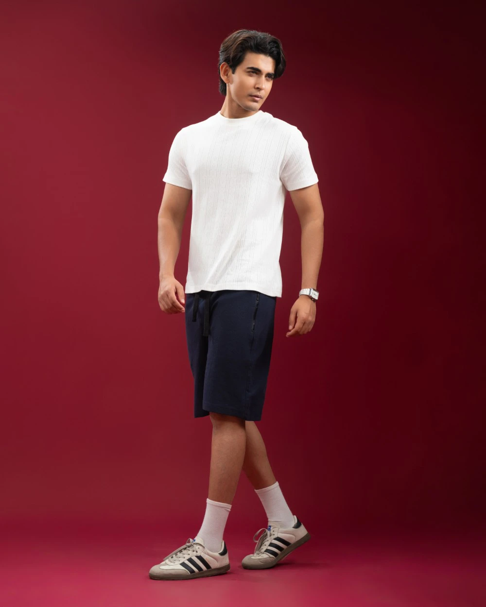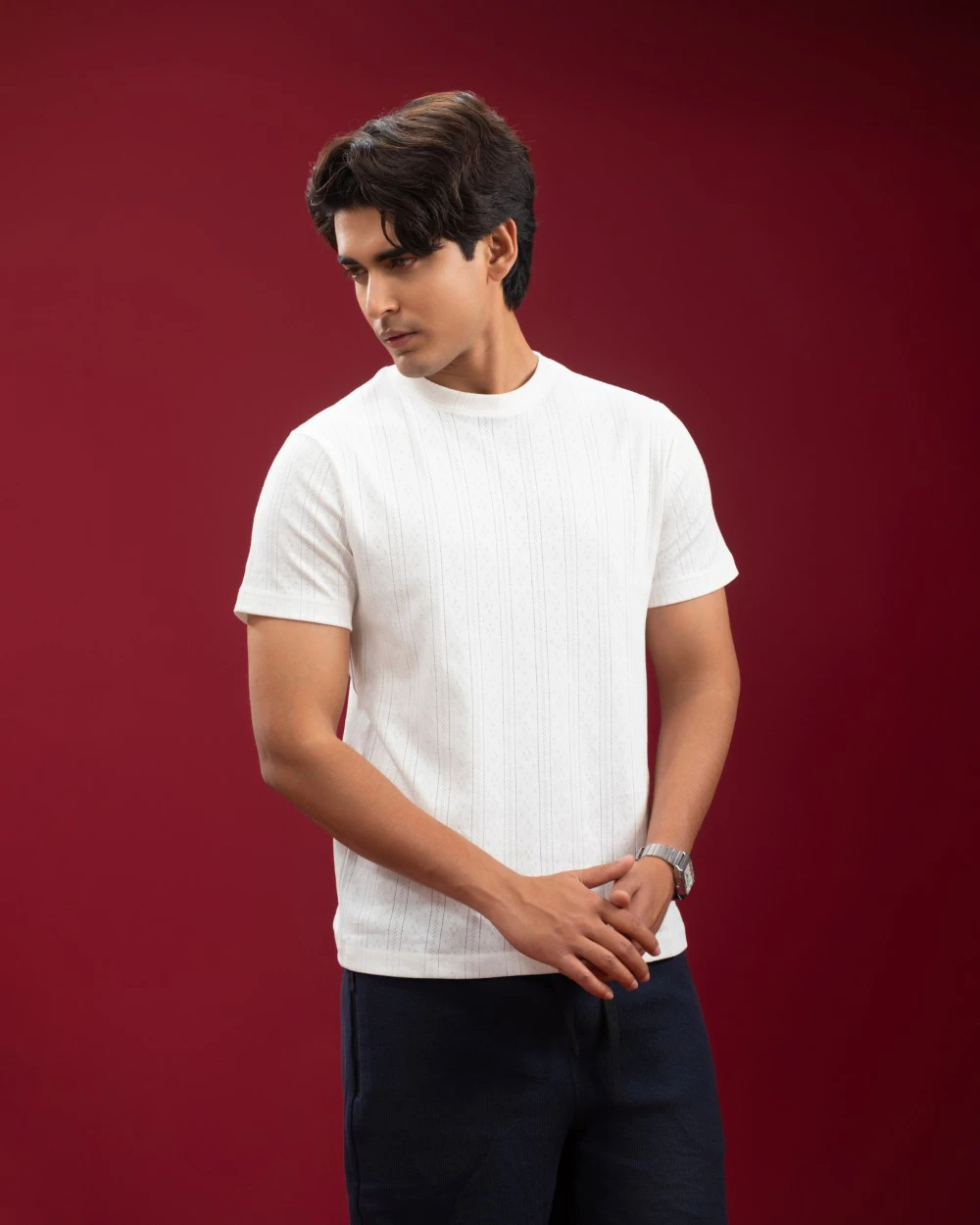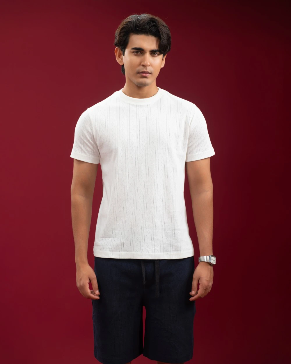 The Pointelle Ribbed T-shirt brings quiet sophistication to your everyday rotation. Its built-in pointelle knit texture adds depth and character you can both see and feel. Lightweight and breathable, it keeps you cool under pressure - whether you're out in the city or relaxing on the weekend.
